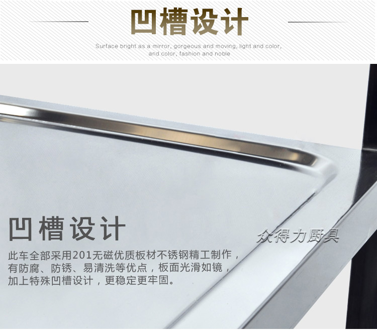 江西眾得力廚具有限公司生產(chǎn)銷(xiāo)售食品機(jī)械,商用廚具系列中央廚房設(shè)備,為客戶(hù)提供廚房整體解決方案。我司生產(chǎn)銷(xiāo)售的酒水車(chē)有大、中、小三種規(guī)格,采用201無(wú)磁不銹鋼設(shè)計(jì)。外形美觀大方,結(jié)實(shí)耐用。深受餐飲酒店客戶(hù)青睞