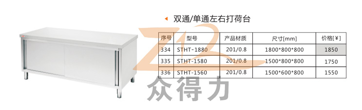 江西眾得力廚具有限公司生產(chǎn)銷售食品機械、商用廚具,為您提供中央廚房整體解決方案而不斷努力,打荷臺系列分為雙通系列單通系列、暖碟系列、翻門系列,標準尺寸為1.8米*800mm和1.5米*800mm兩種規(guī)格,歡迎選購。