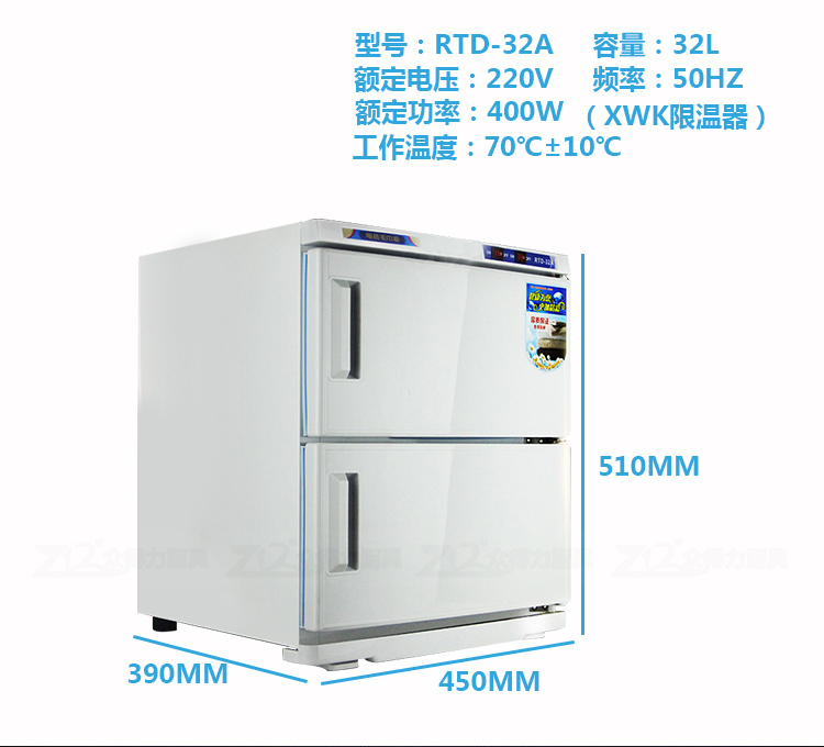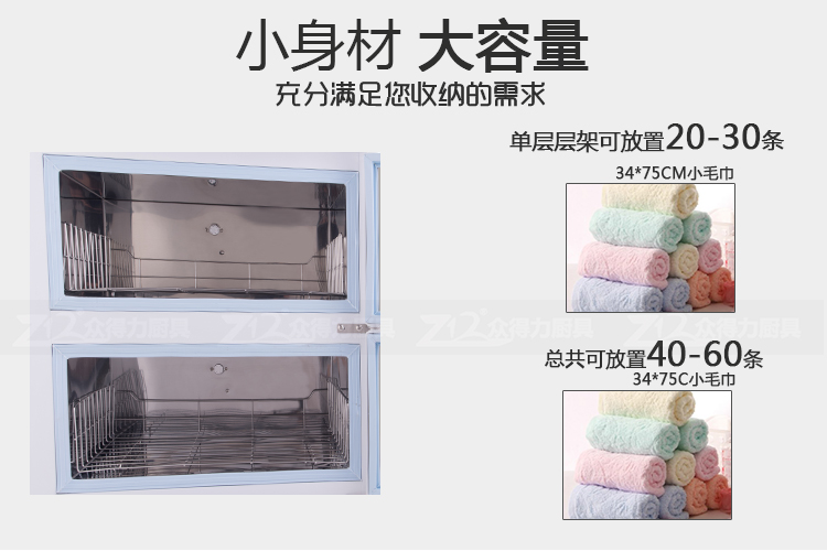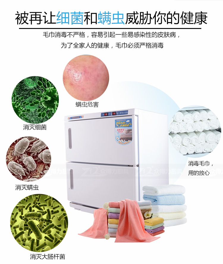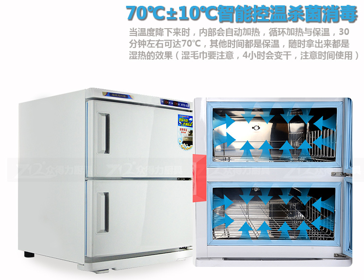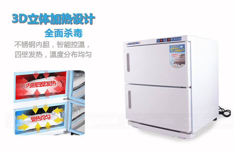 本產(chǎn)品中溫加熱,保溫保濕,毛巾消毒,不再讓細菌和螨蟲威脅您家人的健康和客戶的健康。不銹鋼內(nèi)膽,智能溫控,四壁發(fā)熱,溫度分布均勻。
