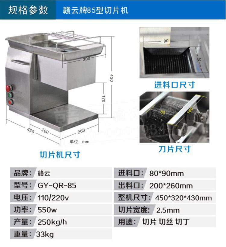 切肉機(jī) 不銹鋼臺(tái)式切肉機(jī) 85型切肉片肉絲機(jī)